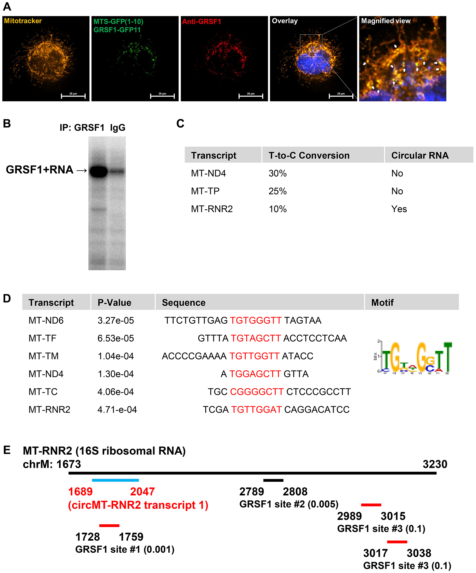 Mitochondria-localized RNA-binding protein GRSF1 binds transcripts
